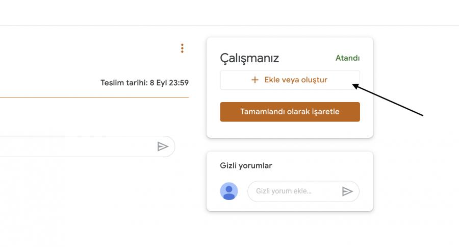 Evraklar aşağıda gösterildiği gibi evrak teslimi ödevi olarak eklenecektir