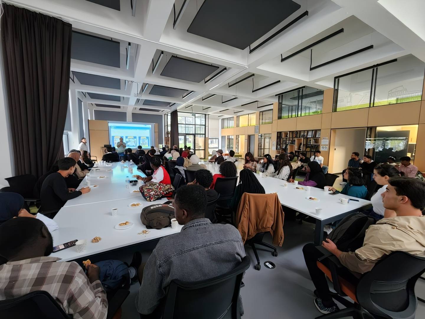 The meeting continued with the presentation of a gift by our Vice Rector Prof. Dr. Ali TEMİZ to our international student Anka NOOR, who received the “Commercialization Potential Award” at the TEKNOFEST Accessible Life Technologies Competition. After the group photo session, international students had the opportunity to meet and socialize while enjoying the refreshments prepared for them.