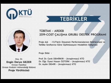 Orman Endüstri Mühendisliği Bölümü Öğretim Üyesi Prof. Dr. Ayfer DÖNMEZ ÇAVDARın projesi, TÜBİTAK-COST 2515 Aksiyon Üyeleri Ar-Ge Destek Programı kapsamında desteklenmiştir.
