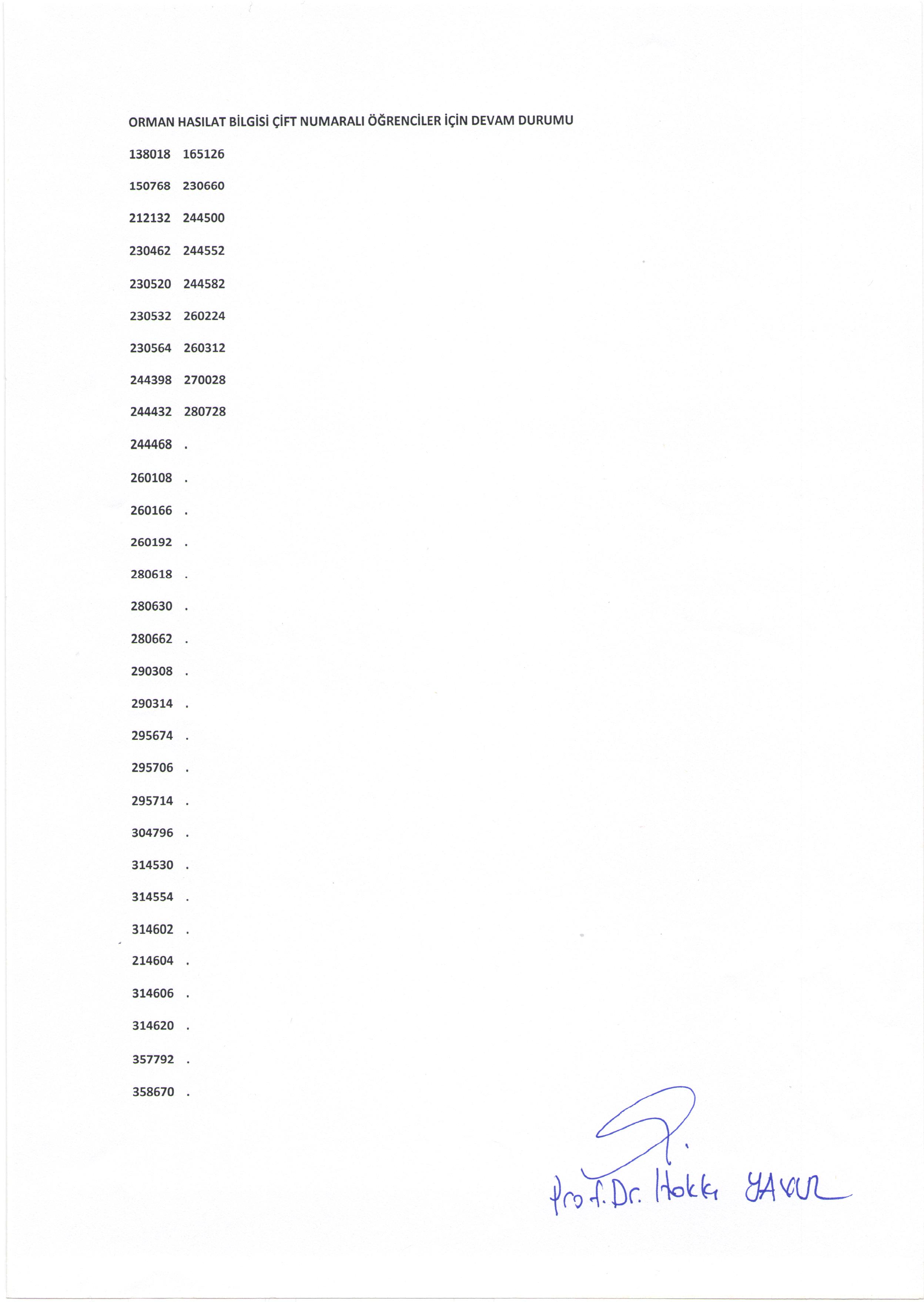 Hasılat Bilgisi Dersi Çift Grup Devamsız Öğrenci Listesi