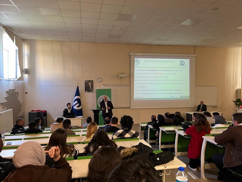 TMMOB Orman Mühendisleri Odası Genel Başkanı Hasan TÜRKYILMAZ tarafından Ormancılık Uygulamaları-I dersi kapsamında "Cumhuriyetimizin 100. Yılında Türk Ormancılığı" semineri gerçekleştirildi.