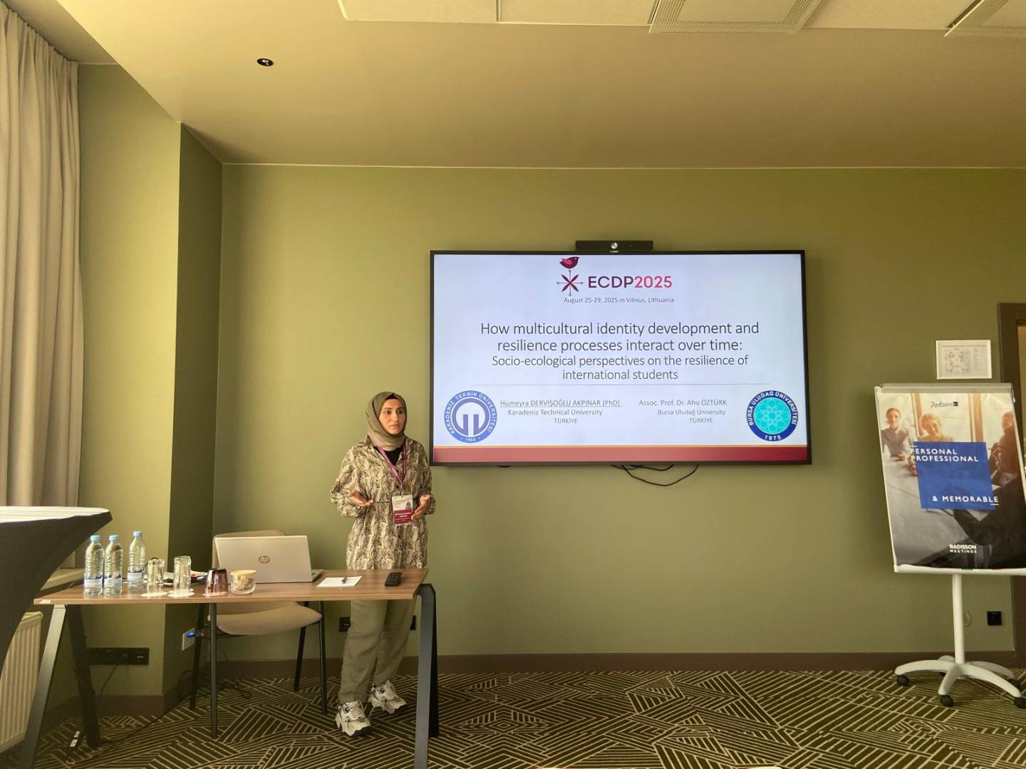 Bölümümüz öğretim elemanı Arş. Gör. Dr. Hümeyra DERVİŞOĞLU AKPINAR, 25-29 Ağustos 2025'te Litvanya'da düzenlenen 22th European Conference on Developmental Psychology (ECDP 2025)'de "How Multicultural Identity Development and Resilience Processes Interact Over Time: Socio-ecological Perspectives on the Resilience of International Students" başlıklı çalışmasını sözel bildiri olarak sunmuştur.