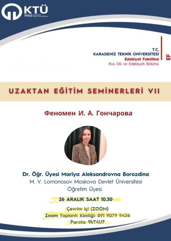 Bölümümüz için yepyeni bir milatı da teşkil eden Seminer Günü 30 Aralık 2022 tarihinde Bölümümüzde gerçekleşti. Öğrencilerimizin akademik anlamda kendi odaklarını oluşturan konulara yönelik yetkinliklerini ve öz güvenlerini pekiştirme amacıyla bir öğrenci çalıştayı atmosferinde düzenlenen Seminer Gününde dördüncü sınıf öğrencilerimiz Rusya’nın edebiyatından kültürüne, tarihinden tiyatrosuna varan çeşitli konularda sunumlarını gerçekleştirdiler.