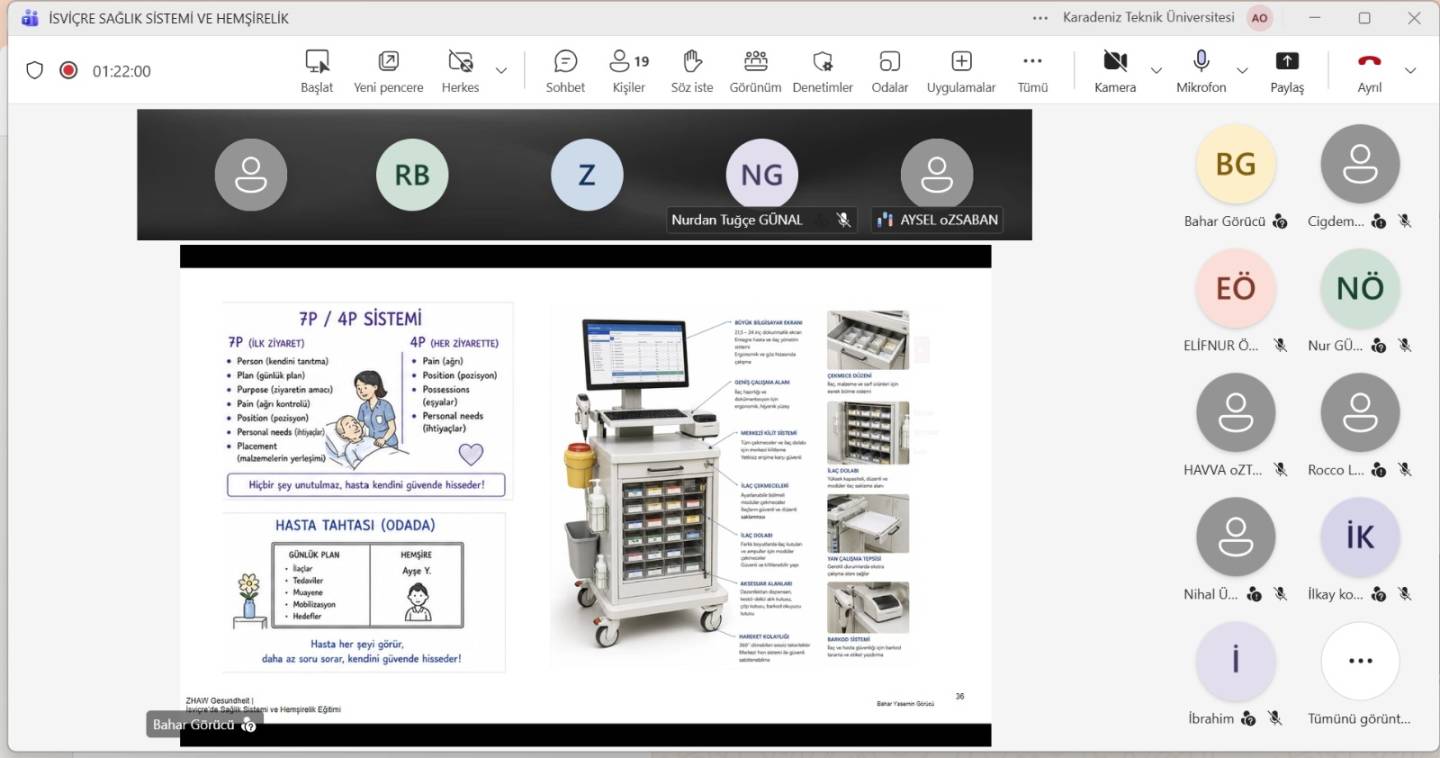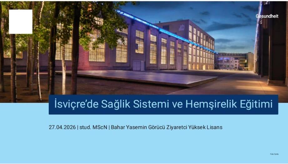 2026 Kalite Güvence Sistemi Faaliyetlerimizde yer alan ''Uluslararasılaşmayı Teşvik Etkinliklerimiz'' kapsamında Zürih Uygulamalı Bilimler Üniversitesi Hemşirelik Enstitüsünden misafir Yüksek Lisans öğrencisi olarak gelen Bahar Yasemin Görücü tarafından ''İsviçre Sağlık Sistemi & Hemşirelik adlı seminer gerçekleştirildi.