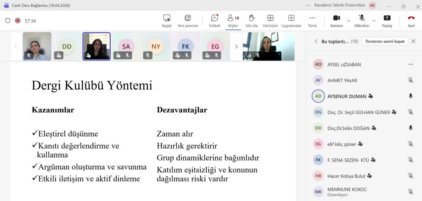 Enstitümüz ve Öğretme ve Öğrenme Merkezi (Ö-MER) tarafından düzenlenen “Sağlık Bilimleri Lisansüstü Eğitiminde Pedagojik Yetkinlik Geliştirme Programı Eğitim Serisi” kapsamında ikinci eğitim olan “Dergi Kulübü ve Kolokyum: Makale/Vaka Temelli Akademik Tartışma Yöntemleri” adlı eğitim etkinliğimiz öğretim üyelerimizin katılımı ile çevrim içi olarak gerçekleştirildi.