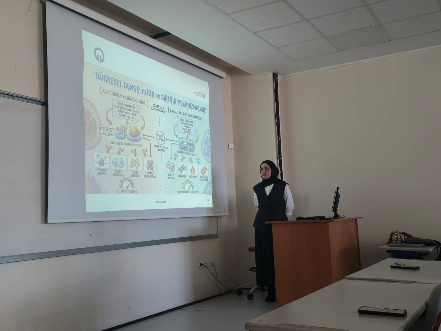 Eczacılıkta Biyokimya Ana Bilim Dalı yüksek lisans öğrencisi İrem ÇETECİ, "Hücresel Yaşlanma ve Metabolizmanın Biyokimyası: Sirtuinler, mTOR ve Kalori Kısıtlaması" konulu seminer sunumunu gerçekleştirdi.