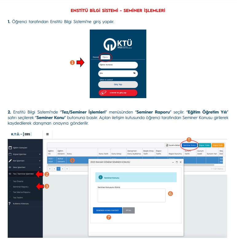 Seminer Konularının Enstitü Bilgi Sistemine Yüklenmesi Hakkında!