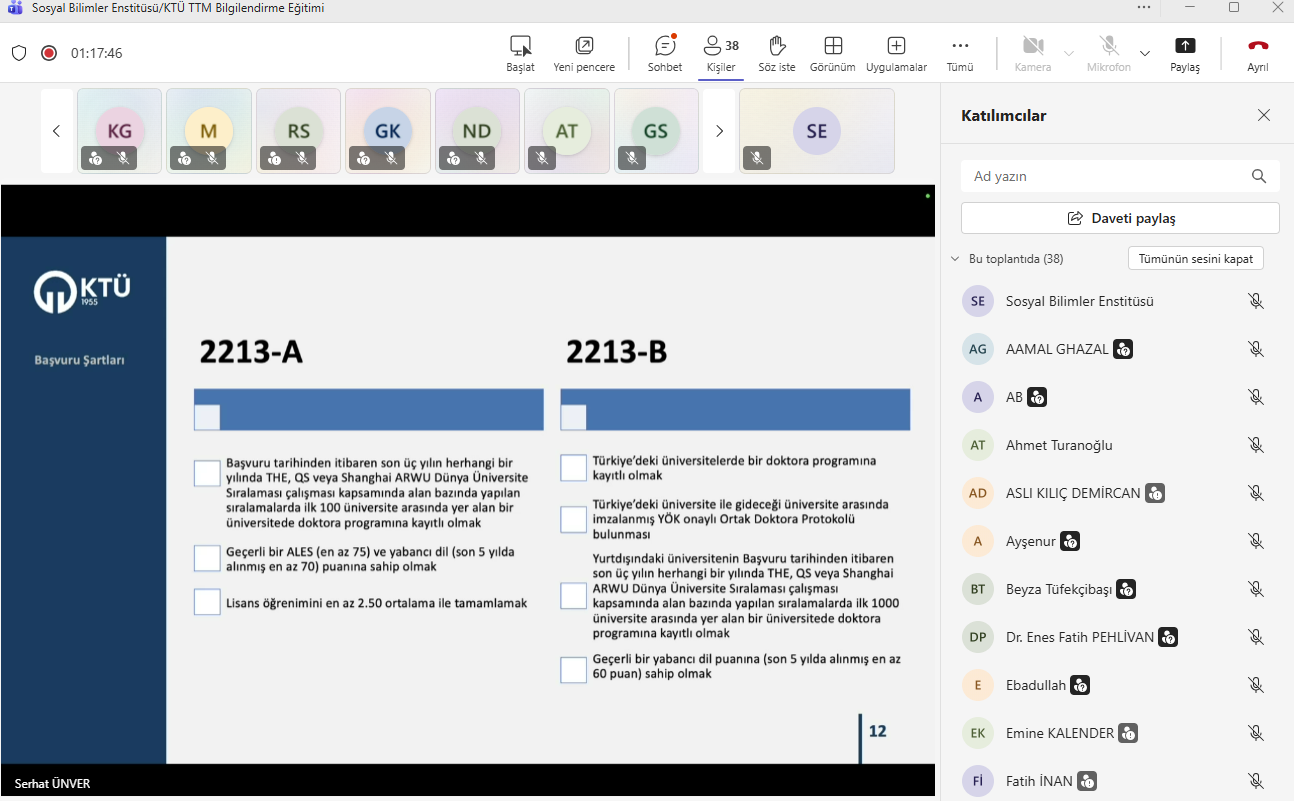 Enstitümüzce, KTÜ TTM İş Birliği ile 06 Kasım 2025 saat 15.00’te COST programları, TÜBİTAK ARDEB ve BİDEB programları hakkında çevrim içi “Akademisyen ve Lisansüstü Öğrencilerine Yönelik Destek Programları Bilgilendirme Eğitimi” düzenlenmiştir.