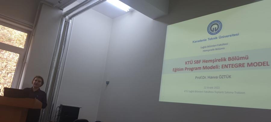 Prof. Dr. Havva ÖZTÜRK tarafından 22 Aralık 2022 Perşembe günü saat 11.30’da “KTÜ Hemşirelik Eğitim Modelinin Tanıtılması” konulu toplantı gerçekleştirmiştir. Kendisine fakültemiz adına şükranlarımızı sunuyoruz.