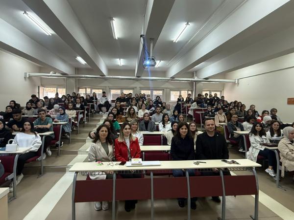 Dumansız kampüs çalışmaları kapsamında Trabzon Yeşilay Danışmanlık Merkezi Sosyal Hizmet Uzmanı Duygu Çolak tarafından 'Tütün Bağımlılığı ile Mücadele Eğitimi' başlıklı sunum yapıldı