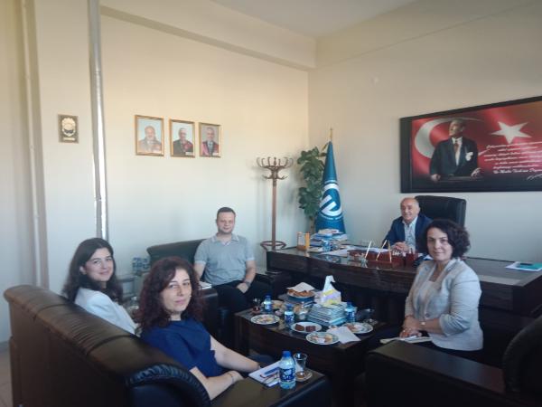 Trabzon Büyükşehir Belediyesi Kalkınma Gençlik Merkezi Sorumlusu Muammer Aydemir, Fakültemiz Dekanı Prof. Dr. Bahittin Kahveci'yi makamında ziyaret etti.