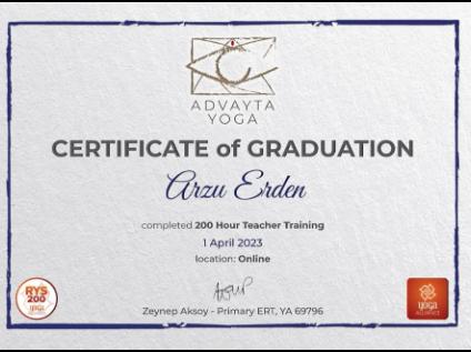 Doç. Dr. Arzu Erden Yoga Alliance onaylı sertifikayı almaya hak kazanmıştır.