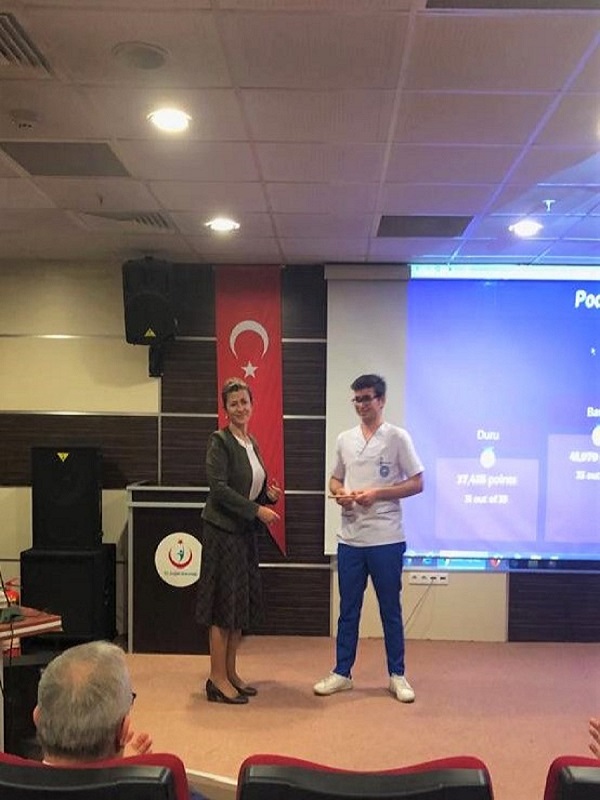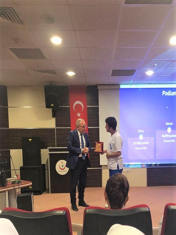 Fakültemiz Dekan Yardımcısı Doç. Dr. Sevilay HİNTİSTAN, Akçaabat Haçkalı Baba Devlet Hastanesi Başhekimi Dr. Osman BULUT, Sağlık Bakım Hizmetleri Müdürü Bedia AYDIN, Eğitim Sorumlusu Emsal KADIOĞLU’nun katılımı ve İç Hastalıkları Hemşireliği Klinik Uygulama Sorumlusu Arş. Gör. Demet KARAİSMAİLOĞLU ve Sağlık Bilimleri Enstitüsü İç Hastalıkları Hemşireliği Yüksek Lisans Programı öğrencisi Beyza KUYUMCU’nun organizasyonuyla HEM2046 İç Hastalıkları Hemşireliği Dersi Klinik Uygulaması I. Bilgi Yarışması gerçekleştirildi. Yarışmamızda birinci olan Battal ÖZCAN’a plaketini Akçaabat Haçkalı Baba Devlet Hastanesi Başhekimi Sayın Dr. Osman BULUT; organizasyonda görev alan öğrencimiz Mikail YILDIRIM’a katkılarından ötürü hediyesini Sağlık Bakım Hizmetleri Müdürü Sayın Bedia AYDIN takdim etti. Yarışmaya katılan değerli katılımcılara ve tüm öğrencilere teşekkür eder, başarılar dileriz.