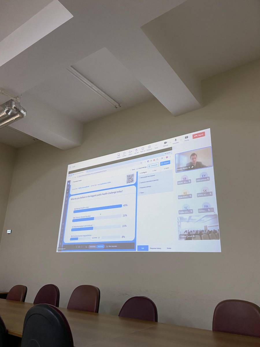 Seminer, KTÜ Sağlık Bilimleri Fakültesi Toplantı Salonu’nda yüz yüze ve çevrim içi katılım imkânı ile gerçekleştirilirken; sağlık yönetimi öğrencileri ve akademisyenler tarafından yoğun ilgi gördü. Etkinlik sonunda Dr. Aydın, öğrenci ve öğretim elemanlarının sorularını yanıtladı.