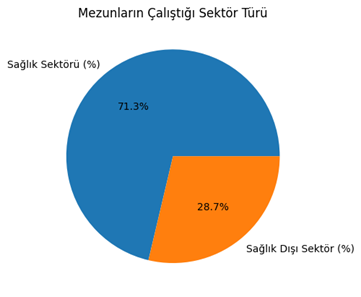Bunun yanı sıra mezunların %27,3?ünün sağlık sektörü dışındaki sektörlerde istihdam edildiği görülmektedir. Bu sektörler arasında sigorta, sanayi, otomotiv, özel sektör hizmet işletmeleri ve girişimcilik faaliyetleri yer almaktadır. Bu durum, mezunların sağlık sektörü başta olmak üzere farklı sektörlerde istihdam edilebildiğini göstermektedir.