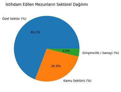 Bu bulgular, mezunların istihdamında özel sektörün önemli bir rol oynadığını ve mezunların farklı sektörlerde istihdam edilebildiğini göstermektedir. Kamu sektörü ise mezunlar için önemli ve istikrarlı bir istihdam alanı olmaya devam etmektedir.