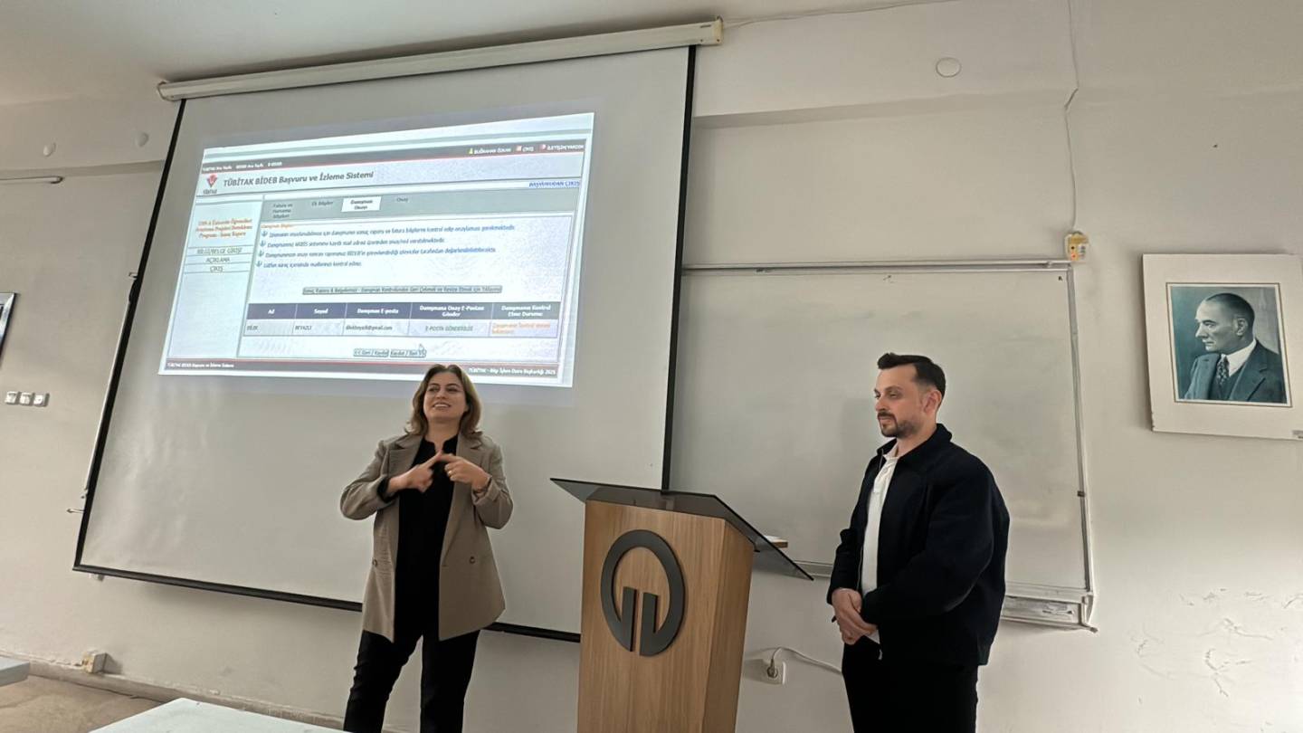 Öncelikle Dr. Öğr. Üyesi Berna Sezen ÖZEN tarafından lisans öğrencilerinin araştırma süreçlerine katılımının sağlanması ve girişimcilik potansiyellerinin desteklenmesine yönelik olarak TÜBİTAK ve KTÜ BAP Projeleri hakkında kısa bilgilendirme yapılmıştır.