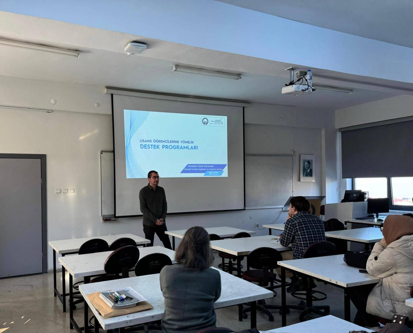 KTÜ Teknoloji Transferi Uygulama ve Araştırma Merkezi tarafından Proje ve Tescil Eğitimi 17 Aralık tarihinde gerçekleştirilmiştir.. Katkıları için Öğr. Gör. Hülya SABIR ve Proje Uzmanı Eren YILMAZ'a teşekkür ederiz.