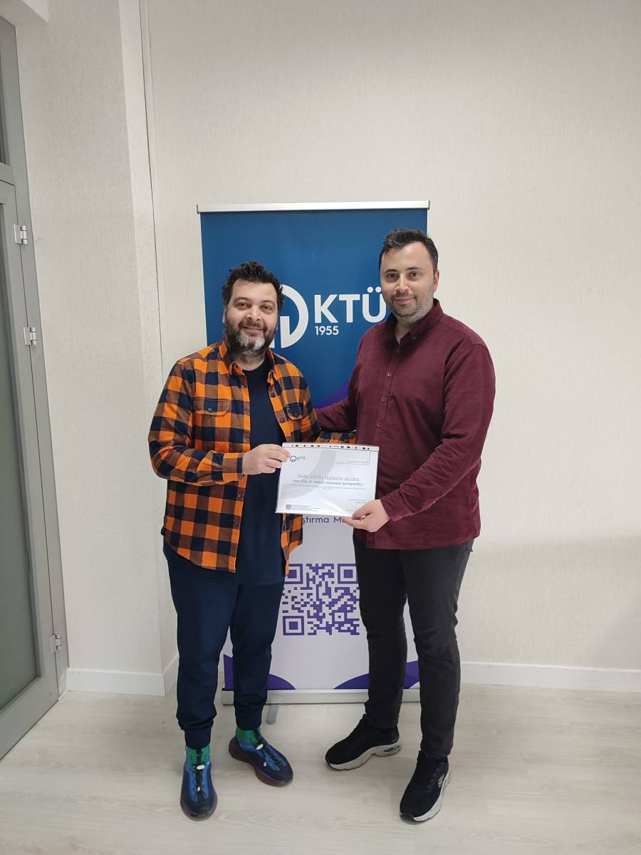 Eğitim sonunda düzenlenen belge takdim töreninde katılımcılara katılım belgeleri, eğitimcilere ise teşekkür belgeleri verildi. Belgeler, KTÜ SEM Müdür Yardımcısı Öğr. Gör. Yavuz Kablan tarafından takdim edildi.