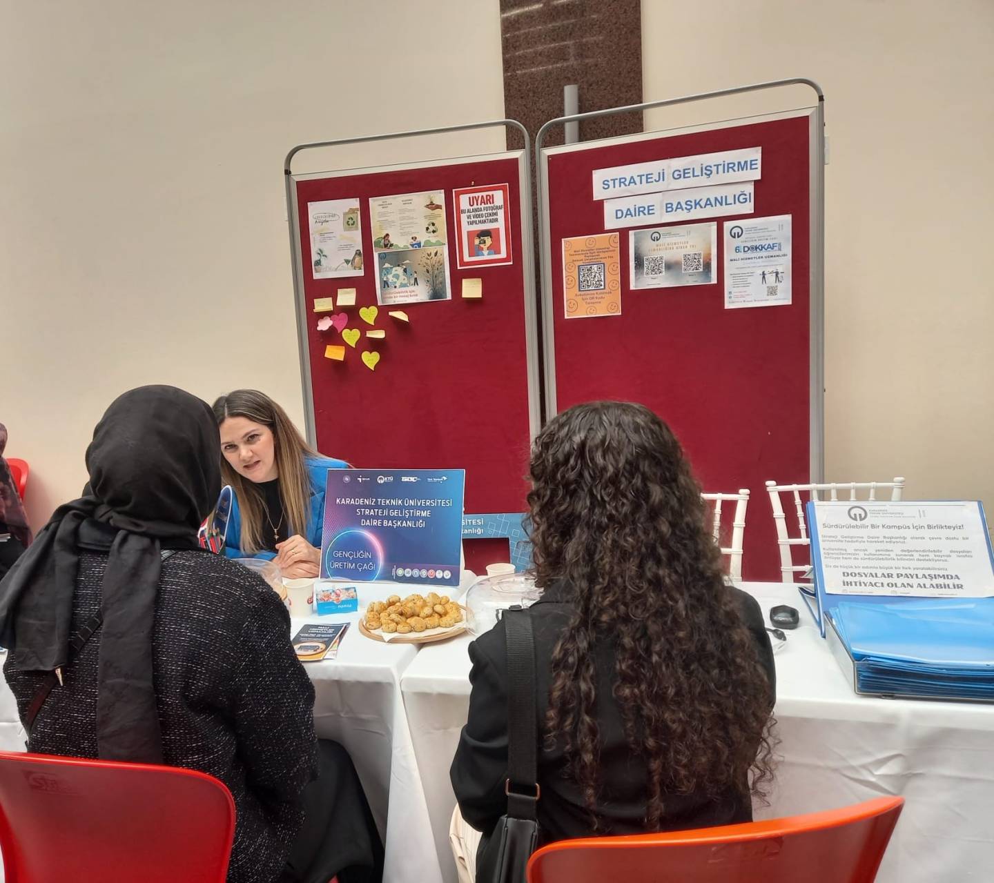 Kariyer fuarı kapsamında sürdürülebilirlik farkındalığını artırmaya yönelik etkinlikler düzenlenmiş ve yeniden kullanılabilir materyaller öğrencilerin kullanımına sunulmuştur.