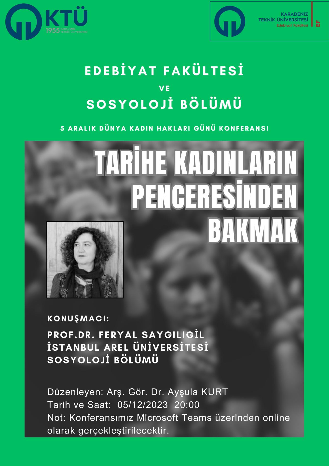 Fakültemiz Sosyoloji Bölümü tarafından 5 Aralık 2023 tarihinde ''Tarihe Kadınların Pencesinden Bakmak'' konulu online konferans düzenlenecektir.