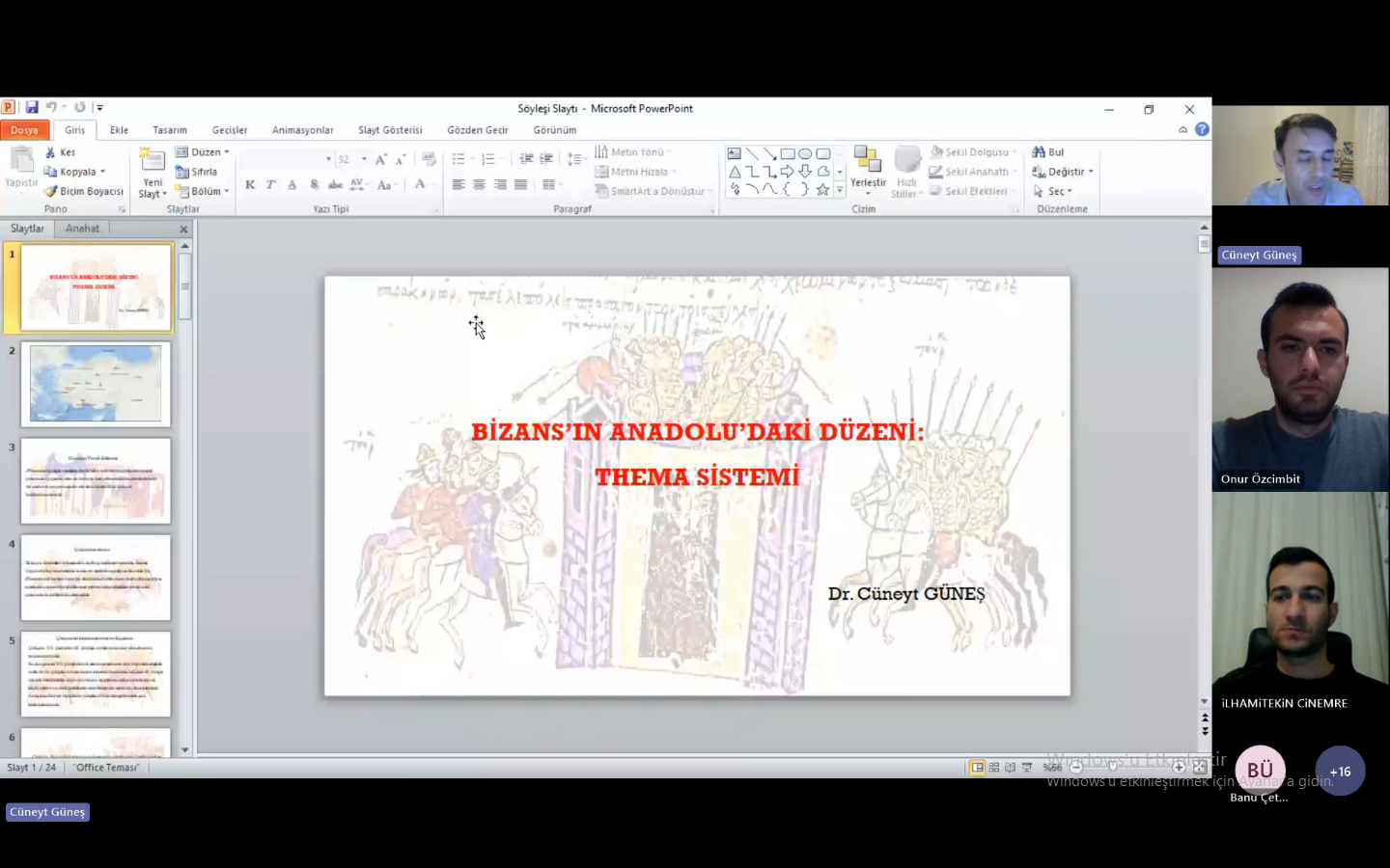 KTÜ Tarih Bölümü Çevrimiçi Seminer Programı kapsamında Dr. Cüneyt GÜNEŞ "Bizans'ın Anadolu'daki Düzeni: Thema Sistemi" başlıklı konferansıyla 06.03.2024 tarihinde saat 20.00'de gerçekleştirilmiştir.