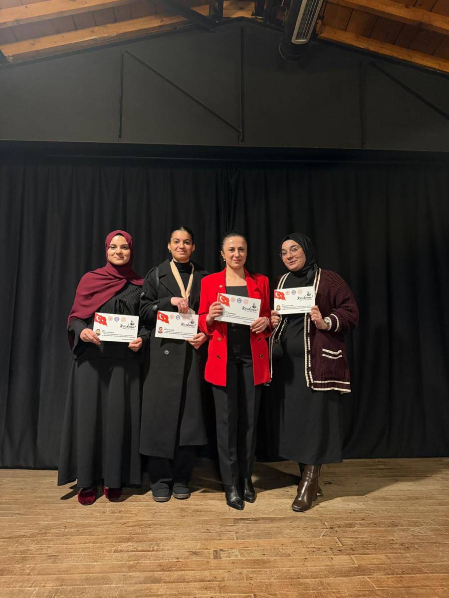 Etkinlikte bölümümüz 1. sınıf öğrencileri Şevval Nisa Çiçek, Gamze Karagülle ve Sudenaz Köse ile doktora öğrencimiz Arzu Küçükosman da görev alarak şiir dinletisine katkı sundular. Program kapsamında öğrencimiz Gamze Karagülle, lise yıllarında birincilik ödülü aldığı “Çanakkale” şiirini okuyarak dinleyicilerden büyük beğeni topladı.