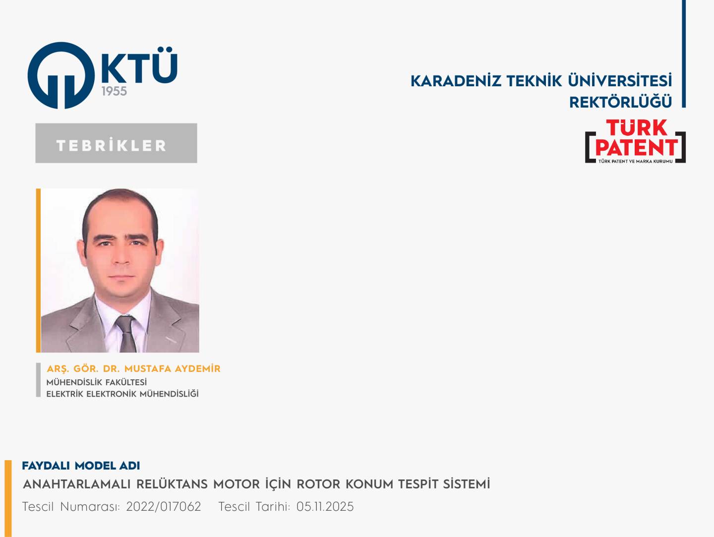 Faydalı Model başvurusu tescillenen akademisyenimizi tebrik eder, sağladığı katkılardan ötürü akademisyenimize teşekkür ederiz.