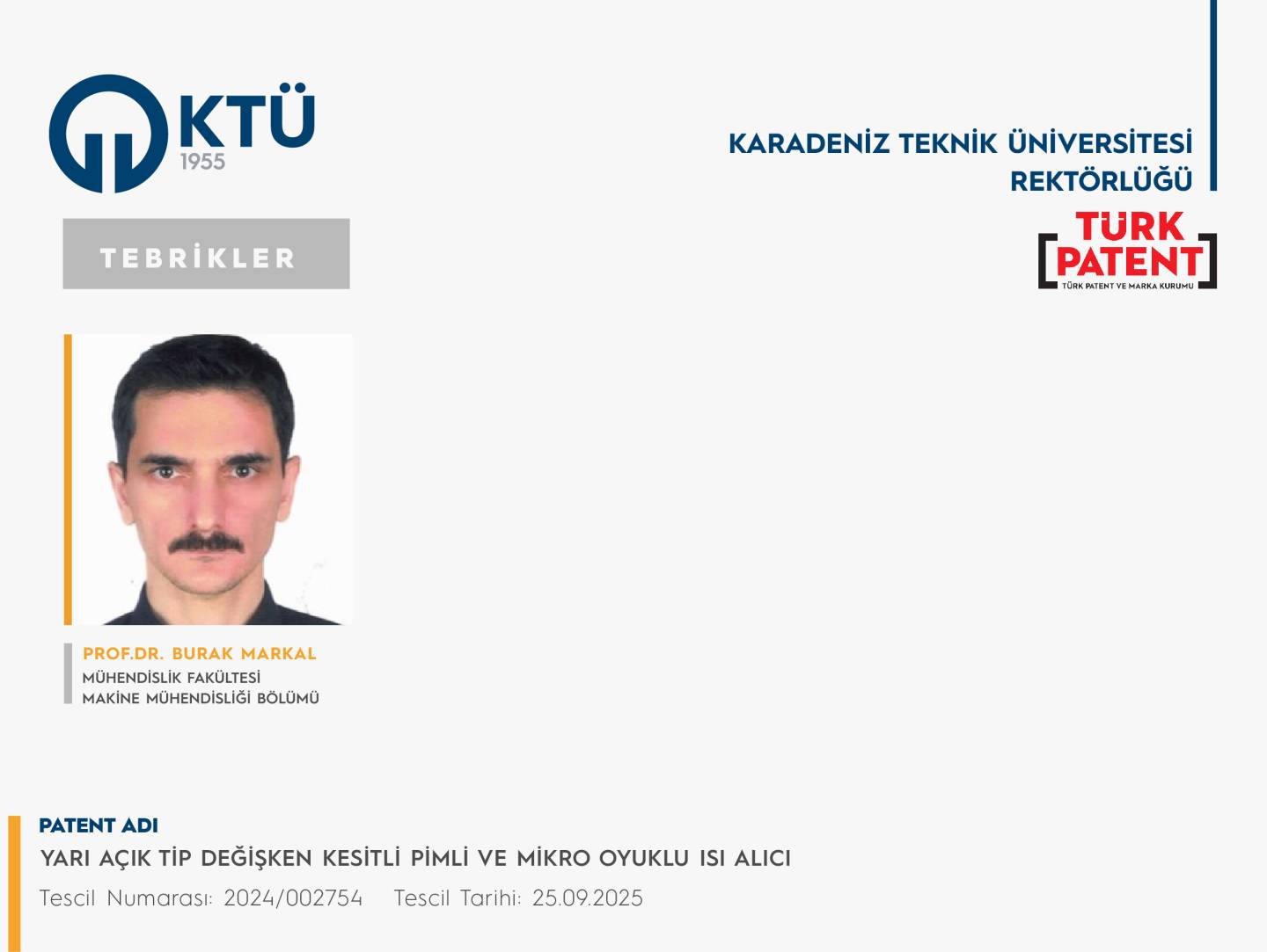 Patent başvurusu tescillenen akademisyenimizi tebrik eder, sağladığı katkılardan ötürü akademisyenimize teşekkür ederiz.
