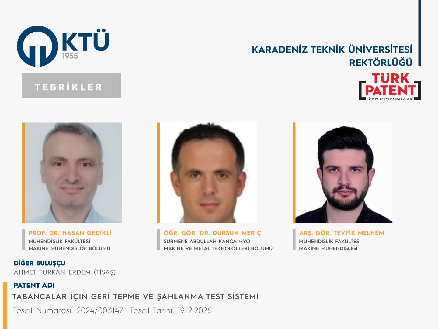 Patent başvurusu tescillenen akademisyenlerimizi ve buluşçuyu tebrik eder, sağladıkları katkılardan ötürü akademisyenlerimize ve buluşçuya teşekkür ederiz.