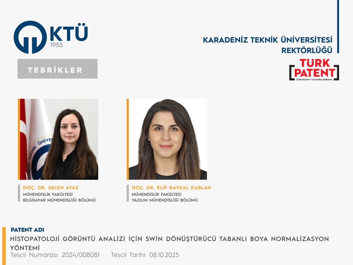 Patent başvurusu tescillenen akademisyenlerimizi tebrik eder, sağladıkları katkılardan ötürü akademisyenlerimize teşekkür ederiz.