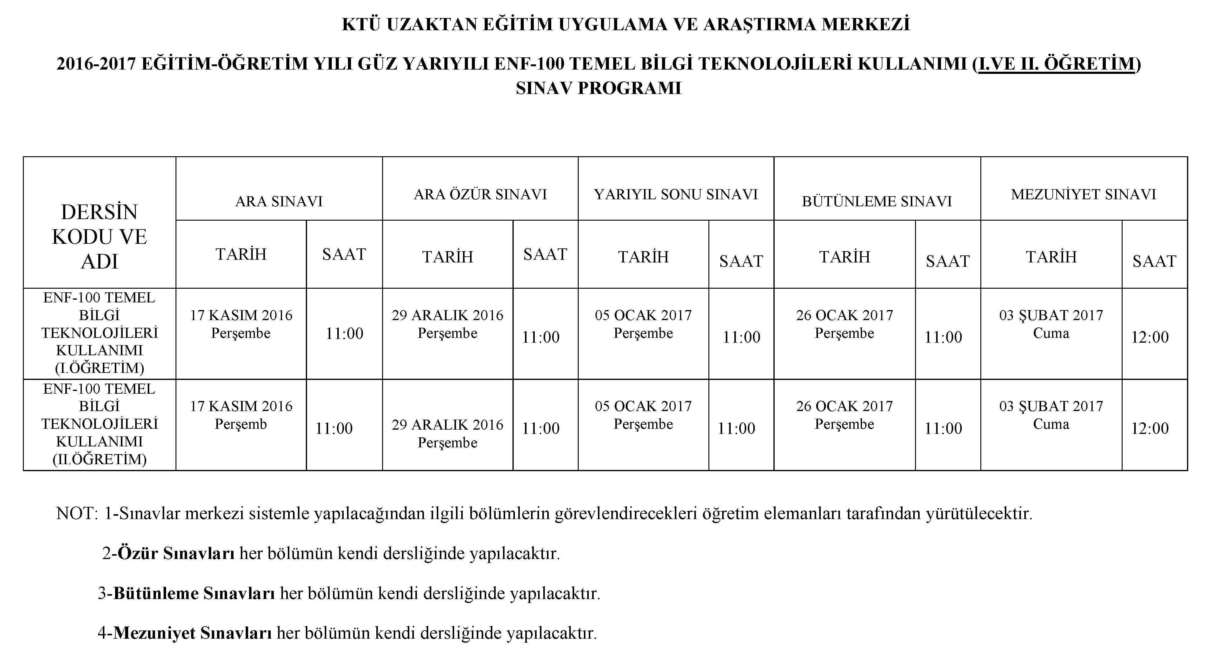 ENF-100 Temel Bilgi Teknolojileri Kullanım Sınav Programı
