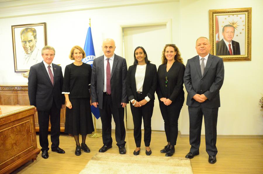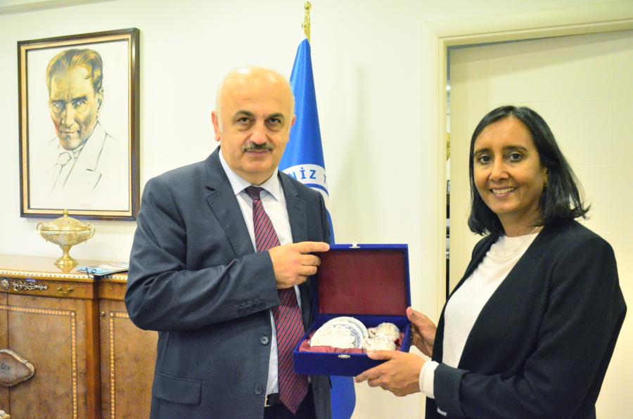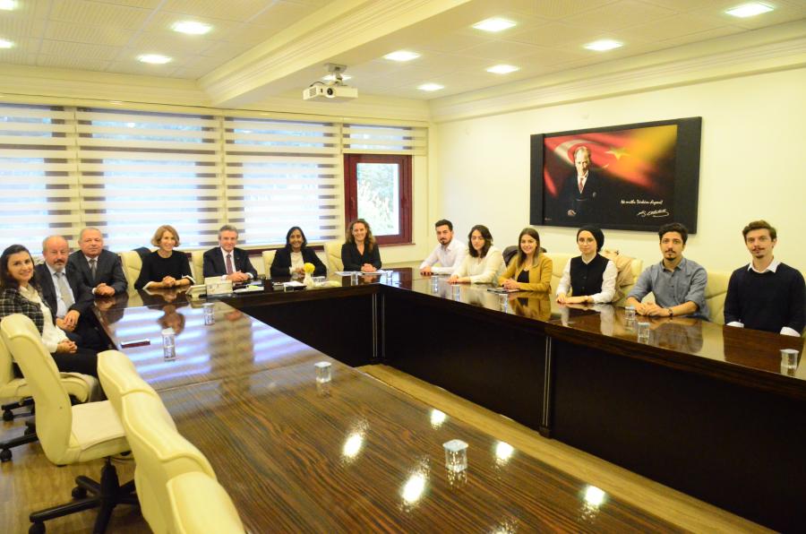 İngiltere Büyükelçiliği Basın Bölümü Müsteşarı Najma BOUAKAZE, Basın Bölümü Başkanı Sanem ÇİÇEKOĞLU ve beraberinde Cheving Programı Sorumluusu Hande ÇELİKEL, 11 Ekim 2018 Perşembe günü Rektörümüz Prof.Dr. Süleyman BAYKAL'ı ziyaret ettiler. Gerçekleştirilen ziyaret esnasında Chevening burs programı hakkında görüşme sağlandı.