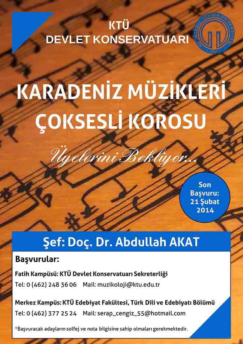 Karadeniz Müzikleri Çoksesli Korosu Üyelerini Bekliyor...
