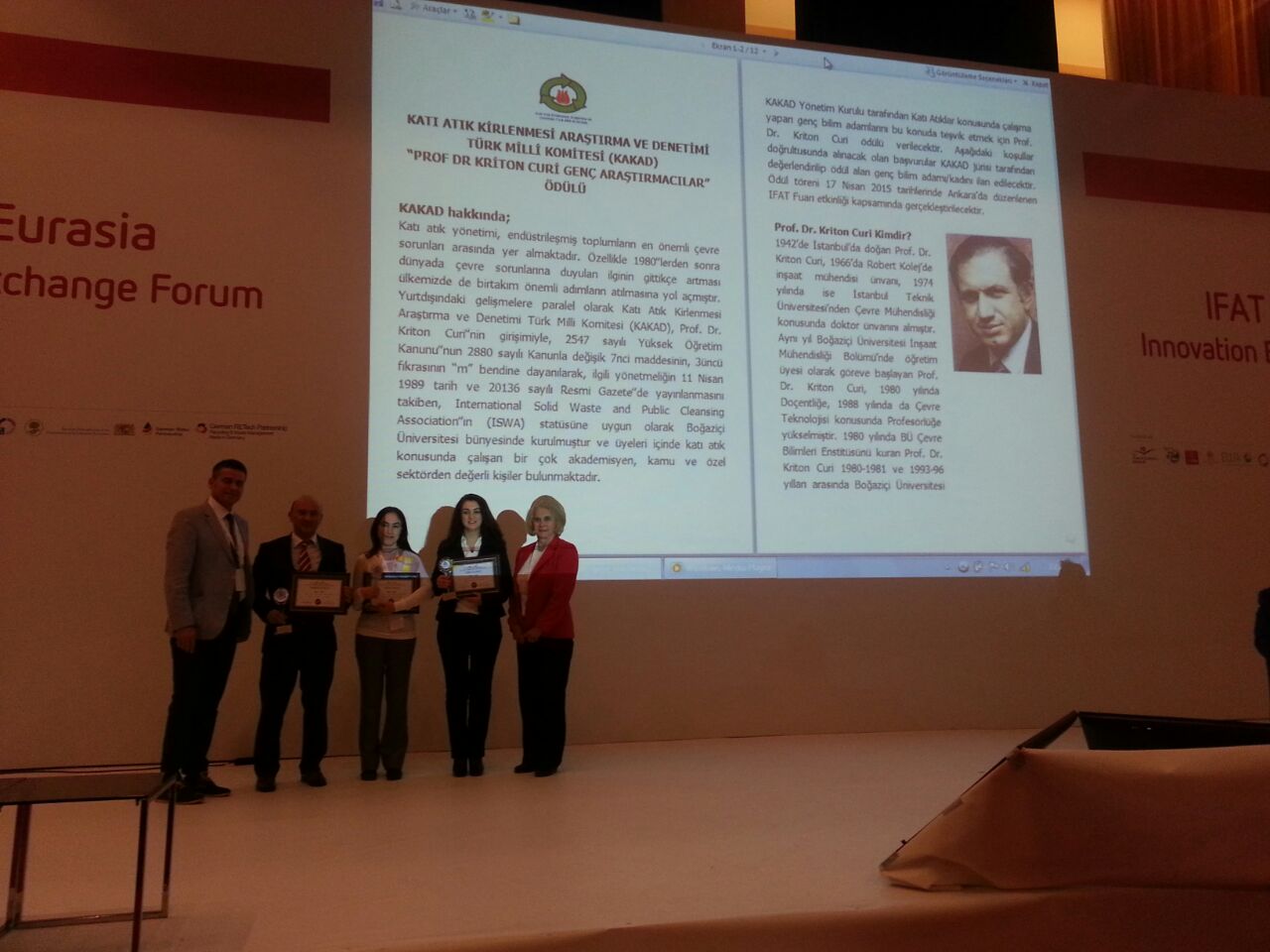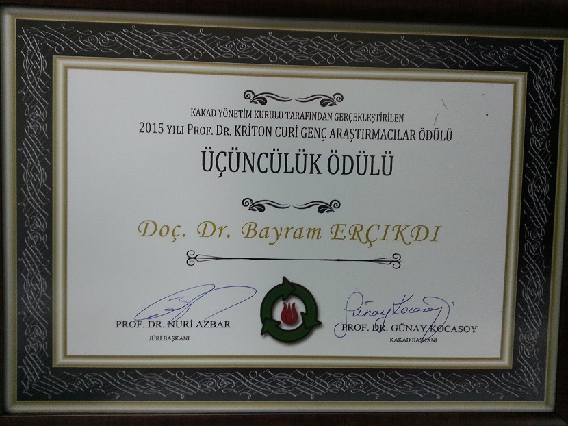 Üniversitemiz Mühendislik Fakültesi Maden Mühendisliği Bölümü Maden İşletme Anabilim Dalı öğretim üyesi Doç. Dr. Bayram ERÇIKDI, madencilik endüstrisinde cevher zenginleştirme sonucu açığa çıkan ince taneli atıkların macun dolgu teknolojisi ile yeraltında emniyetli olarak depolanabilmesine yönelik yapmış olduğu çalışmalar nedeniyle, Boğaziçi Üniversitesi bünyesinde kurulu olan Katı Atık Kirlenmesi Araştırma ve Denetimi Türk Milli Komitesi (KAKAD) tarafından Prof. Dr. Kriton Curi Genç Araştırmacı Ödülüne (Üçüncülük) layık görülmüştür.