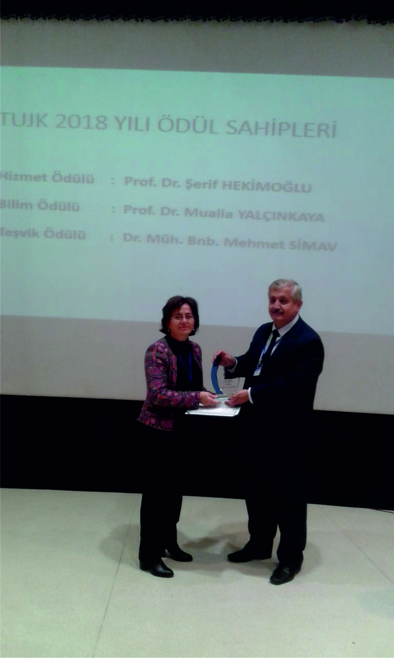 Mühendislik Fakültesi Harita Mühendisliği Bölümü öğretim üyesi ve Jeodezi Anabilim Dalı Başkanı Prof. Dr. Mualla YALÇINKAYA’ya Jeodezi Alanında bugüne kadar gerçekleştirdiği bilimsel çalışmalar nedeniyle 2018 Yılı Türkiye Ulusal Jeodezi Komisyonu (TUJK) Bilim Ödülüne layık görülmüştür. Prof. Dr. Mualla YALÇINKAYA’ya ödülü 1 Kasım 2018 tarihinde Dokuz Eylül Üniversitesi ev sahipliğinde ve Harita Genel Müdürlüğü tarafından düzenlenen TUJK 2018 Yılı Bilimsel toplantısında takdim edilmiştir. Öğretim üyemiz, ödül töreninde bilimsel araştırma faaliyetleri, eğitim ve araştırma kalitesinin artırılması konusundaki çalışmaları hakkında bilgi verdiği bir teşekkür konuşması yapmıştır.