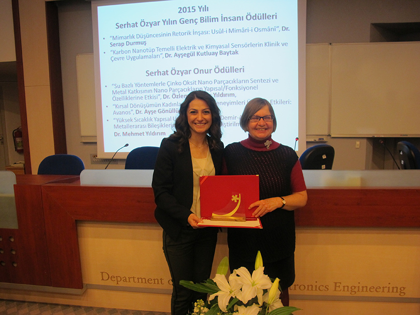 Serhat Özyar Yılın Genç Bilim İnsanı Ödülü 2015 yılında"Mimarlık Düşüncesinin Retorik İnşası: Usul-i Osmani" başlıklı doktora teziyle Mimarlık Fakültesi öğretim üyesi Yrd.Doç.Dr. Serap DURMUŞ'a verildi.