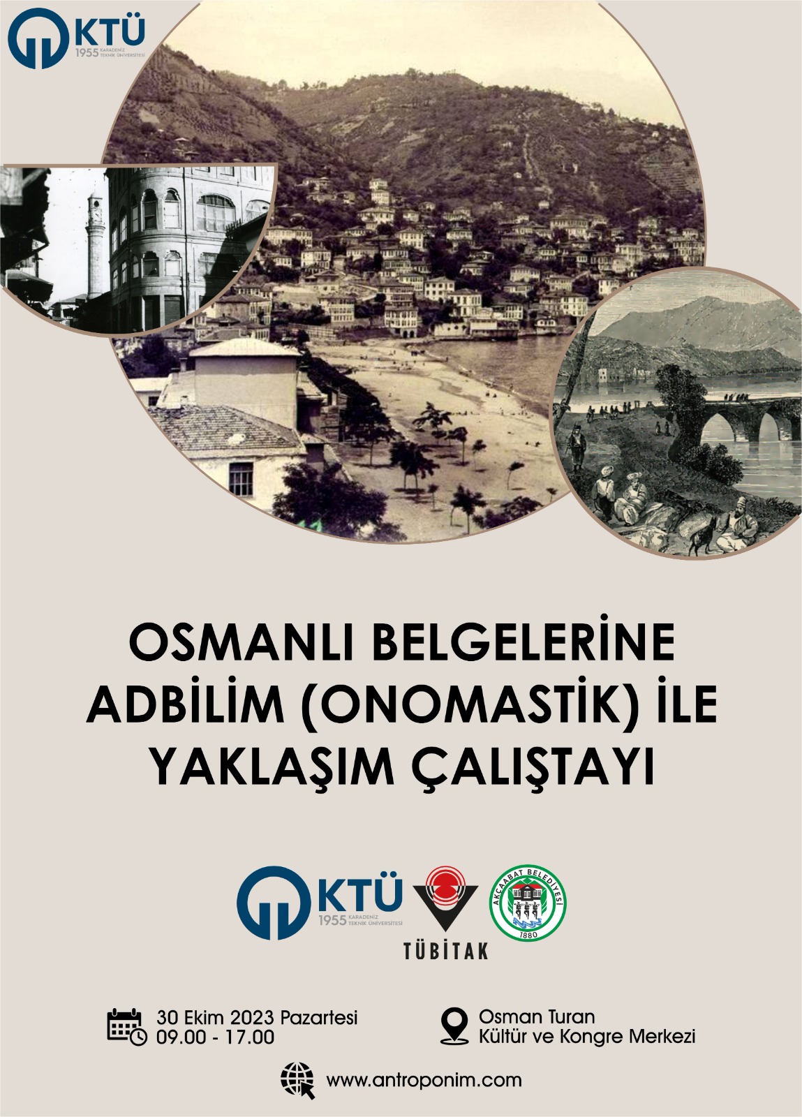 KTÜ Prof. Dr. Osman Turan Kongre ve Kültür Merkezi'nde 30 Ekim 2023 tarihinde 09.00-17.00 arasında bölümüz öğretim üyesi Dr. Öğr. Üyesi Aslı ÖZCAN'ın katkıları ve Prof. Dr. Bilgehan Atsız GÖKDAĞ, Prof. Dr. Ali AÇIKEL, Prof. Dr. İbrahim ŞAHİN, Prof. Dr. Cahit TELCİ, Prof. Dr. Turan GÖKÇE, Prof. Dr. Aparslan DEMİR, Doç. Dr. Mehmet Salih ERPOLAT, Doç. Dr. Ahmet KESKİN'in katılımlarıyla "Osmanlı Belgelerine Adbilim (Onomastik) ile Yaklaşım Çalıştayı" gerçekleştirilecektir.