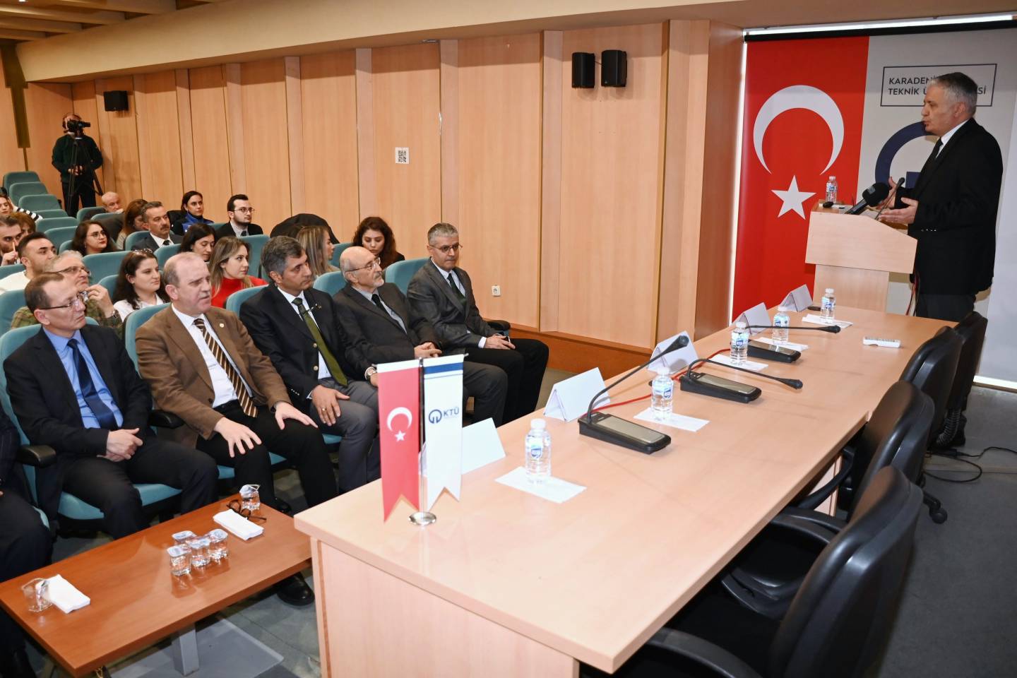 Türkiye Mühendis ve Mimar Odaları Birliği (TMMOB) Şehir Plancıları Odası Trabzon Şubesi öncülüğünde düzenlenen panele; Trabzon Vali Yardımcısı Ali YILMAZ, Trabzon Büyükşehir Belediye Başkan Yardımcısı Ahmet Yüksel GÜLAY, Üniversitemiz Rektörü Prof. Dr. Hamdullah ÇUVALCI, Üniversitemiz Mimarlık Fakültesi Dekanı Prof. Dr. Cenap SANCAR, Harita Mühendisleri Odası Başkanı Prof. Dr. Ebru ÇOLAK ile TMMOB Trabzon İl Koordinasyon Kurulu’na bağlı meslek odalarının temsilcileri, kamu kurum ve kuruluşları ile sivil toplum kuruluşlarının temsilcileri, akademisyenler ve öğrenciler katıldı.