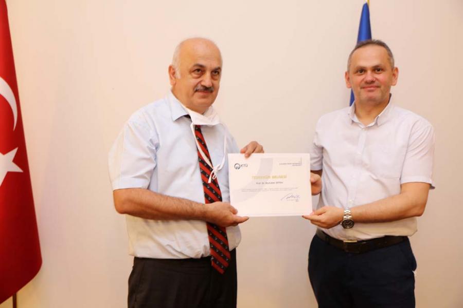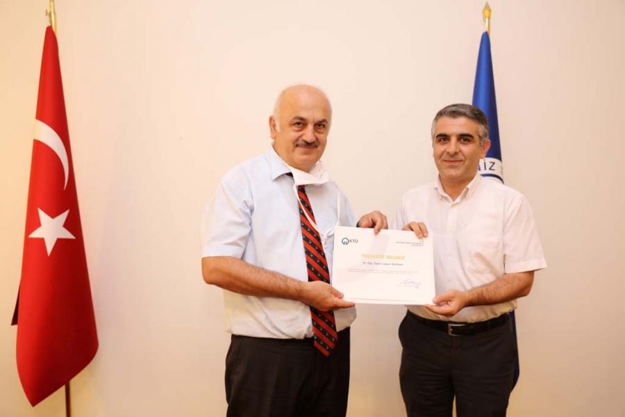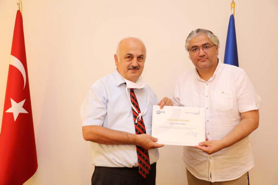 Covid-19 Pandemi sürecinde, 2019-2020 Eğitim-Öğretim yılı Bahar dönemi derslerinin uzaktan eğitim yöntemi ile yürütülmesindeki özverili çalışmaları sebebiyle Uzaktan Eğitim Merkezi, Bilgi İşlem Daire Başkanlığı personeli ile fakülte ve meslek yüksekokullarının uzaktan eğitim koordinatörlerine 24 Temmuz 2020 tarihinde Rektörlük Senato Salonunda düzenlenen bir törenle Teşekkür Belgesi verildi.