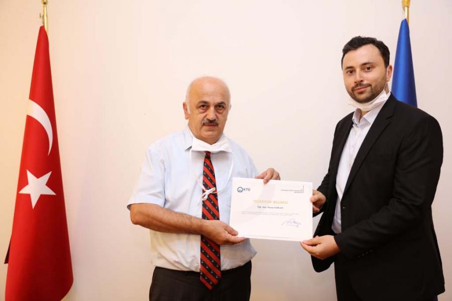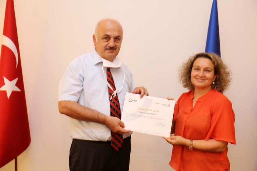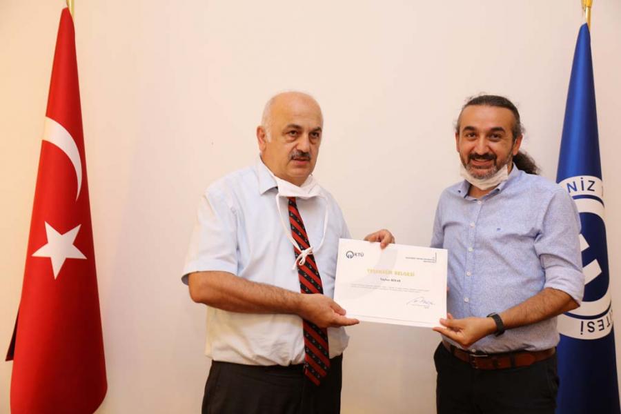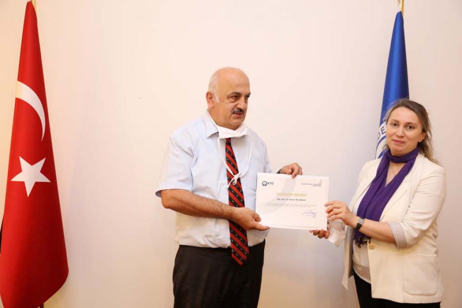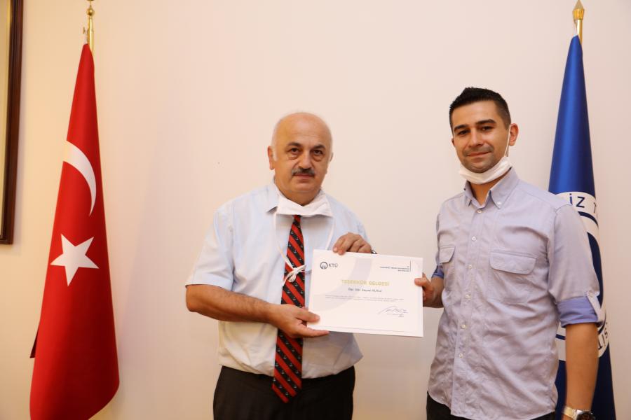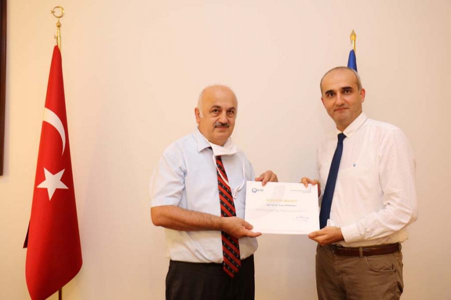 Covid-19 Pandemi sürecinde Uzaktan Eğitim Derslerinin Yürütülmesinde Görev Alan Personele Teşekkür Belgesi Takdimi