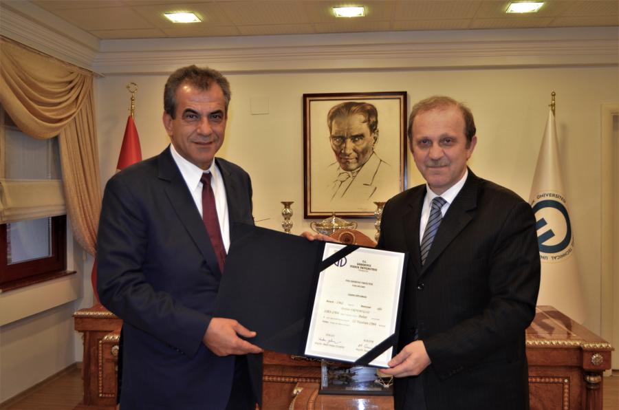 Erdemoğlu Holding Yönetim Kurulu Başkanı İbrahim ERDEMOĞLU, Diplomasını Rektörümüzün Elinden Aldı
