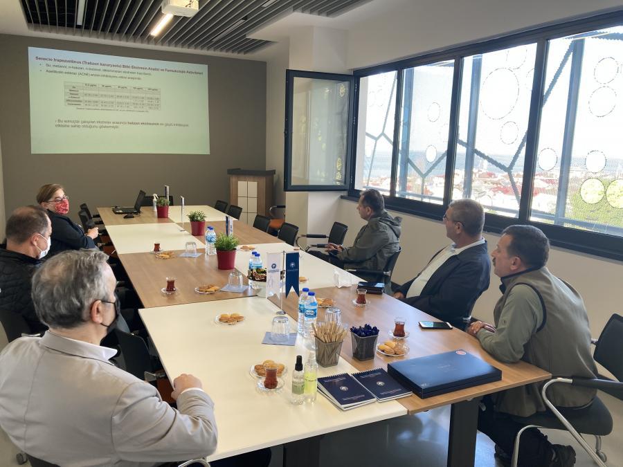 Heyet içerisinde; DKMP Genel Müdür Yardımcısı Mustafa BULUT, DKMP 12. Bölge Müdürü Cüneyt ALOĞLU, DKMP Genel Müdürlüğü Daire Başkanı M. Tuğrul ŞAHİN ve DKMP Trabzon Şube Müdürü Akif ÜMÜZER yer alırken toplantı sonunda, pre-klinik birinci aşaması olumlu verilerle sonuçlanan çalışmanın sürdürülmesi ve sürecin, Ülkemiz için ilaç olma potansiyeline doğru ilerlemesi ve iş birliğinin devamı noktasında görüş birliğine varıldı.