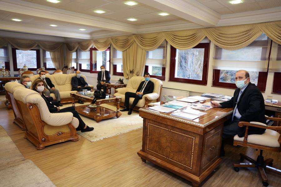 Meteoroloji Bölge Müdürü Zerrin DEMİRÖRS ve Şube Müdürü Batuhan ATEŞ, 04.02.2021 tarihinde Rektörümüz Prof. Dr. Hamdullah ÇUVALCI'yı ziyaret etti.