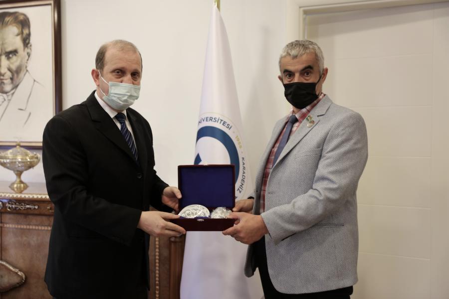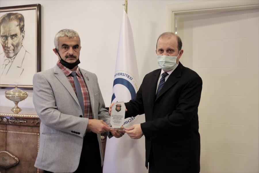 Türkiye Harp Malulü Gaziler-Şehit Dul ve Yetimleri Derneği Trabzon Şubesi Başkanı Ahmet TEZCAN, Başkan Yardımcısı Mehmet SARI ve Yönetim Kurulu Üyesi Metin SEYİS, Rektörümüz Prof. Dr. Hamdullah ÇUVALCI’yı, makamında ziyaret etti.