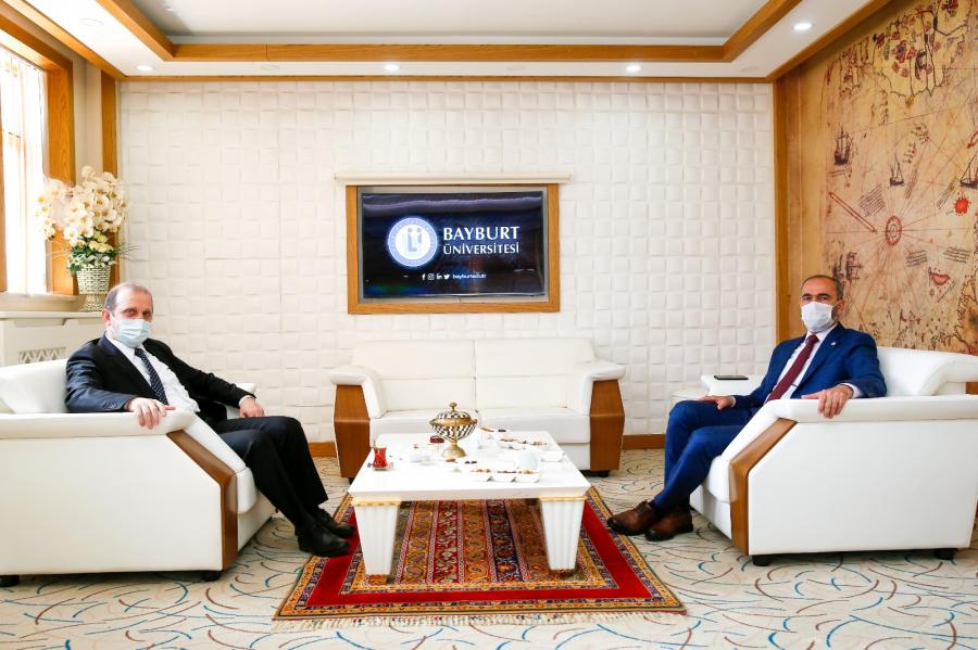 Rektörümüz Prof. Dr. Hamdullah ÇUVALCI, Bayburt Üniversitesi Rektörlüğü'ne atanan, aynı zamanda Uluslararası Bocce Konfederasyonu (CBI) ve Türkiye Bocce Bowling ve Dart Federasyonu (TBBDF) Başkanı olan Prof. Dr. Mutlu TÜRKMEN’i makamında ziyaret ederek tebrik etti.