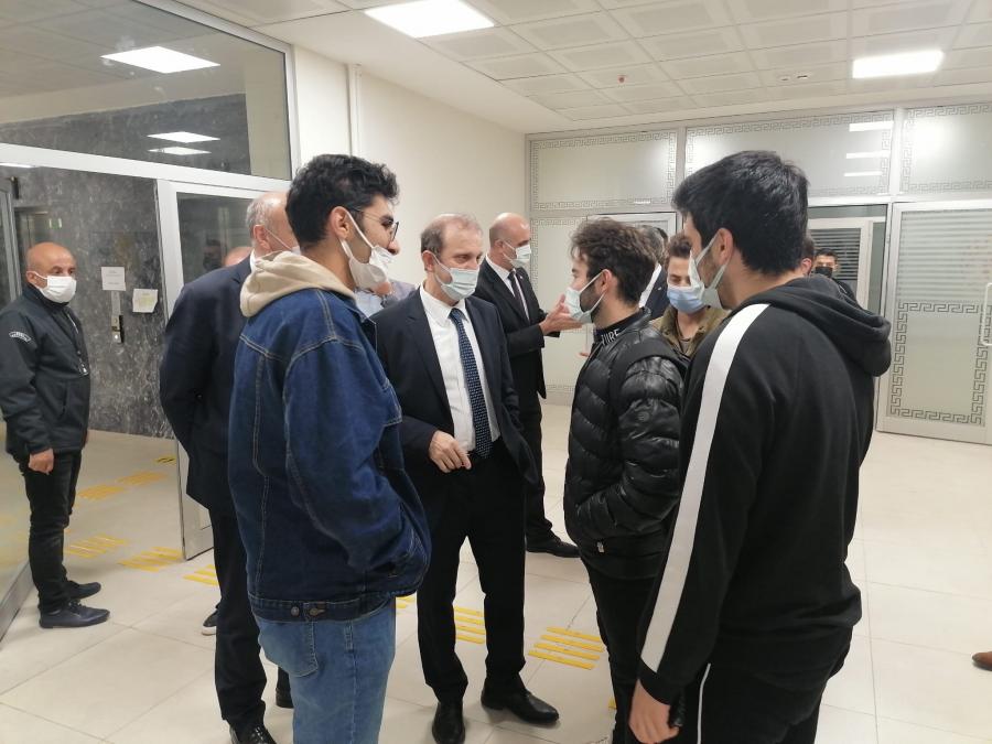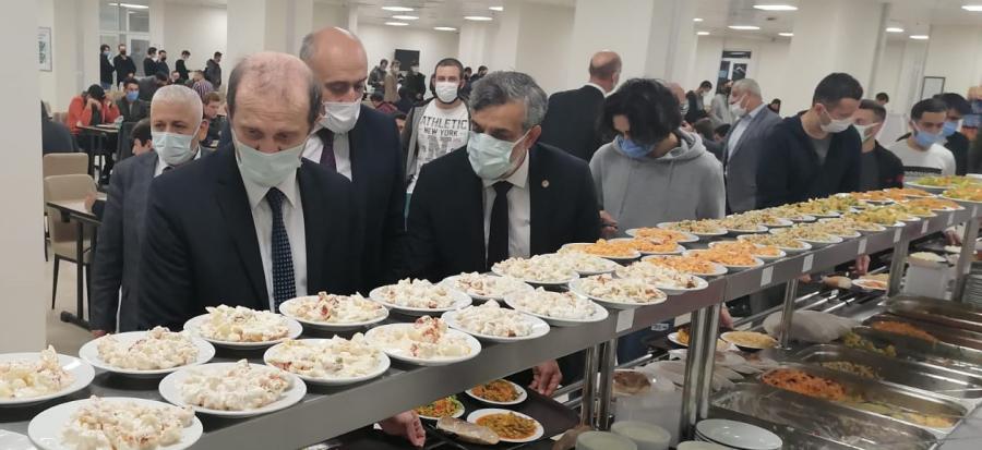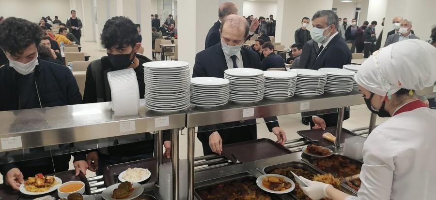 Öğrencilerimizin eğitim-öğretim gördüğü mekânların dışında yaşadıkları ve temel ihtiyaçlarını karşıladıkları ortamları ziyaret etmek isteyen Rektörümüz, onların sosyal ve sportif aktivitelerini gerçekleştirdiği mekânları gezdi ve isteklerini dinledi. Öğrencilerimiz, devletin kendilerine sağladığı beslenme ve barınma imkânlarını yerinde gözlemleyen Rektörümüze, hizmetlerden ve ziyaretten duyduğu memnuniyeti dile getirdi.