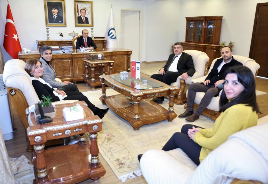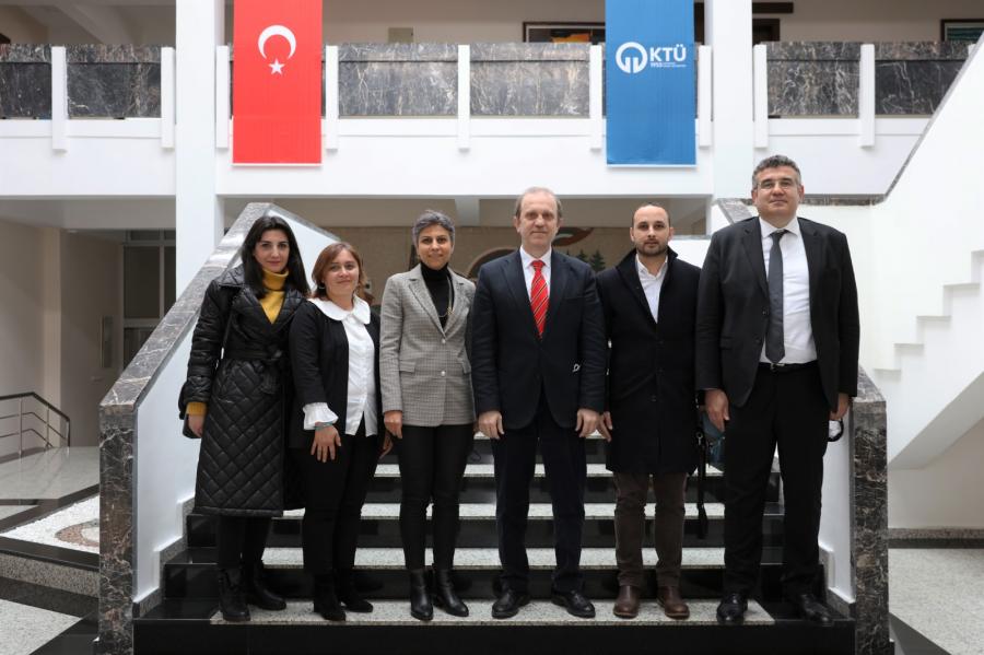 TMMOB (Türk Mühendis ve Mimar Odaları Birliği) Jeoloji Mühendisleri Odası Trabzon Şubesi Başkanı Semi HAMZAÇEBİ ve Yönetim Kurulu Üyeleri; Doç. Dr. Arzu FIRAT ERSOY, Aygül AYAR, Kübra MUHCU, Bora BİLGİÇ, Rektörümüz Prof. Dr. Hamdullah ÇUVALCI’yı makamında ziyaret etti.