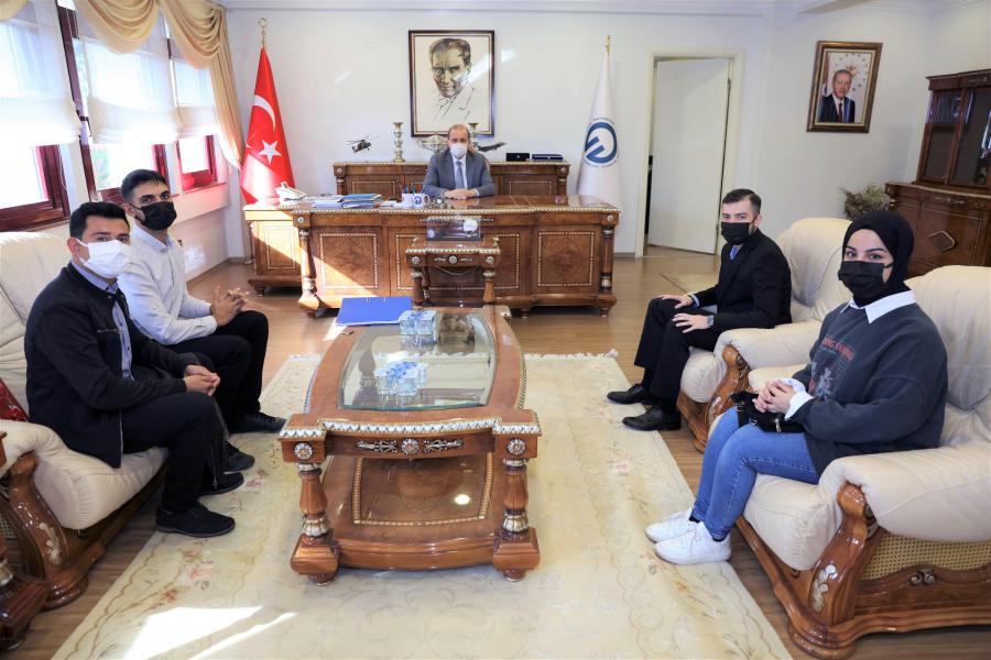 Trabzon Hukuk Klinikleri Kulübü (THKK) Başkanı Talha KALAYCI ve beraberindeki kulüp üyeleri, Rektörümüz Prof. Dr. Hamdullah ÇUVALCI’yı makamında ziyaret etti.
