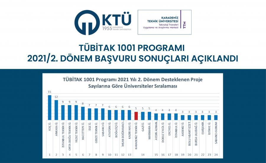 TÜBİTAK "1001-Bilimsel ve Teknolojik Araştırma Projelerini Destekleme Programı” kapsamında üniversitemizden başvuru yapılan 37 projeden 5'i desteklenmeye hak kazandı. Kabul edilen projeler sayısına göre KTÜ, Gazi Üniversitesi ve Marmara Üniversitesi ile birlikte 14. sırada yer aldı. Destek alan akademisyenlerimizi tebrik eder, başarılar dileriz.